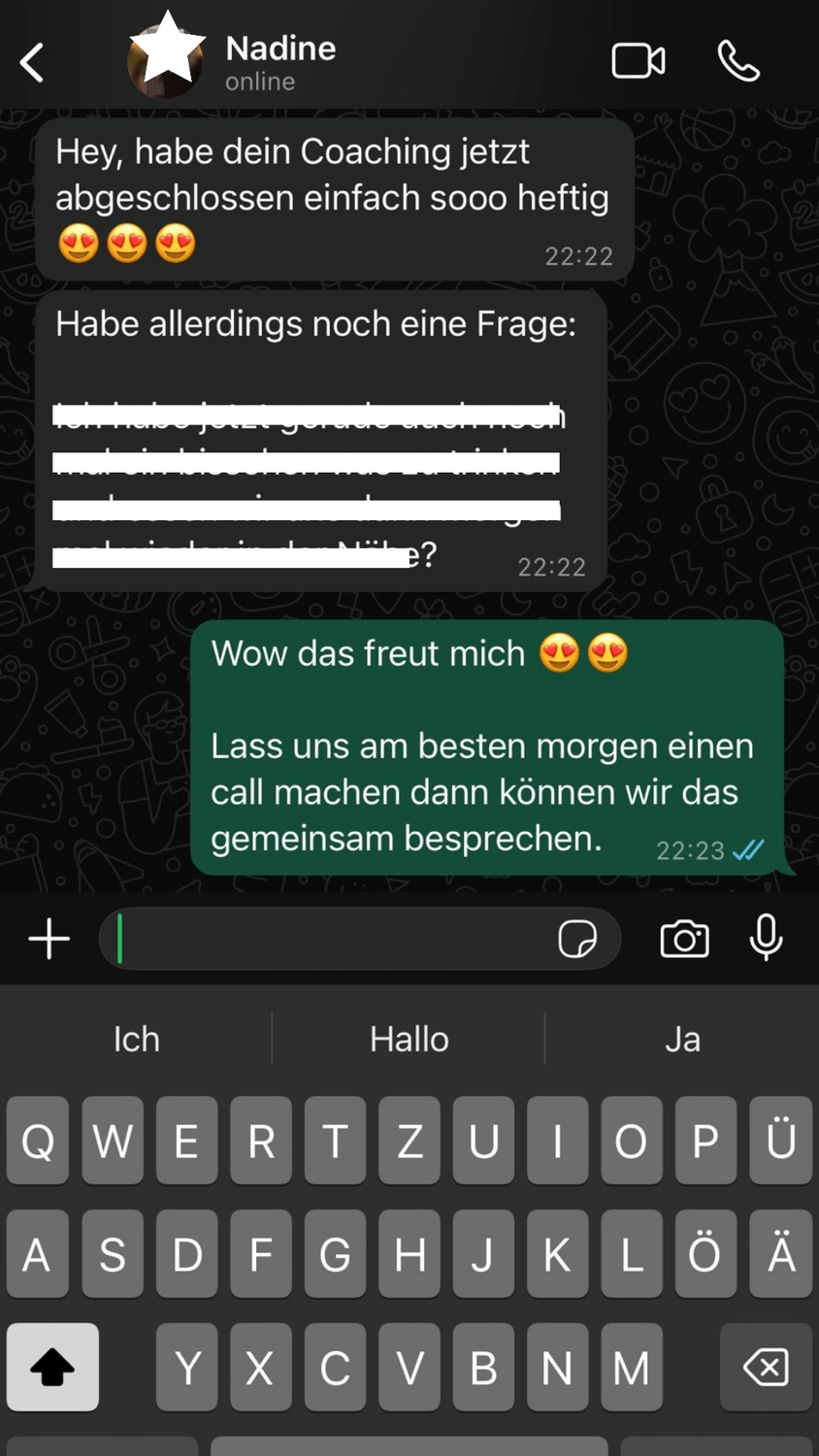 Das hängt natürlich davon ab, wie aktiv und strategisch du arbeitest. Viele Teilnehmerinnen verdienen bereits nach kurzer Zeit zwischen 500 und 1000 Euro im Monat nebenbei. Mit der richtigen Positionierung, Ausdauer und etwas Feingefühl sind aber auch deutlich höhere Einnahmen möglich.